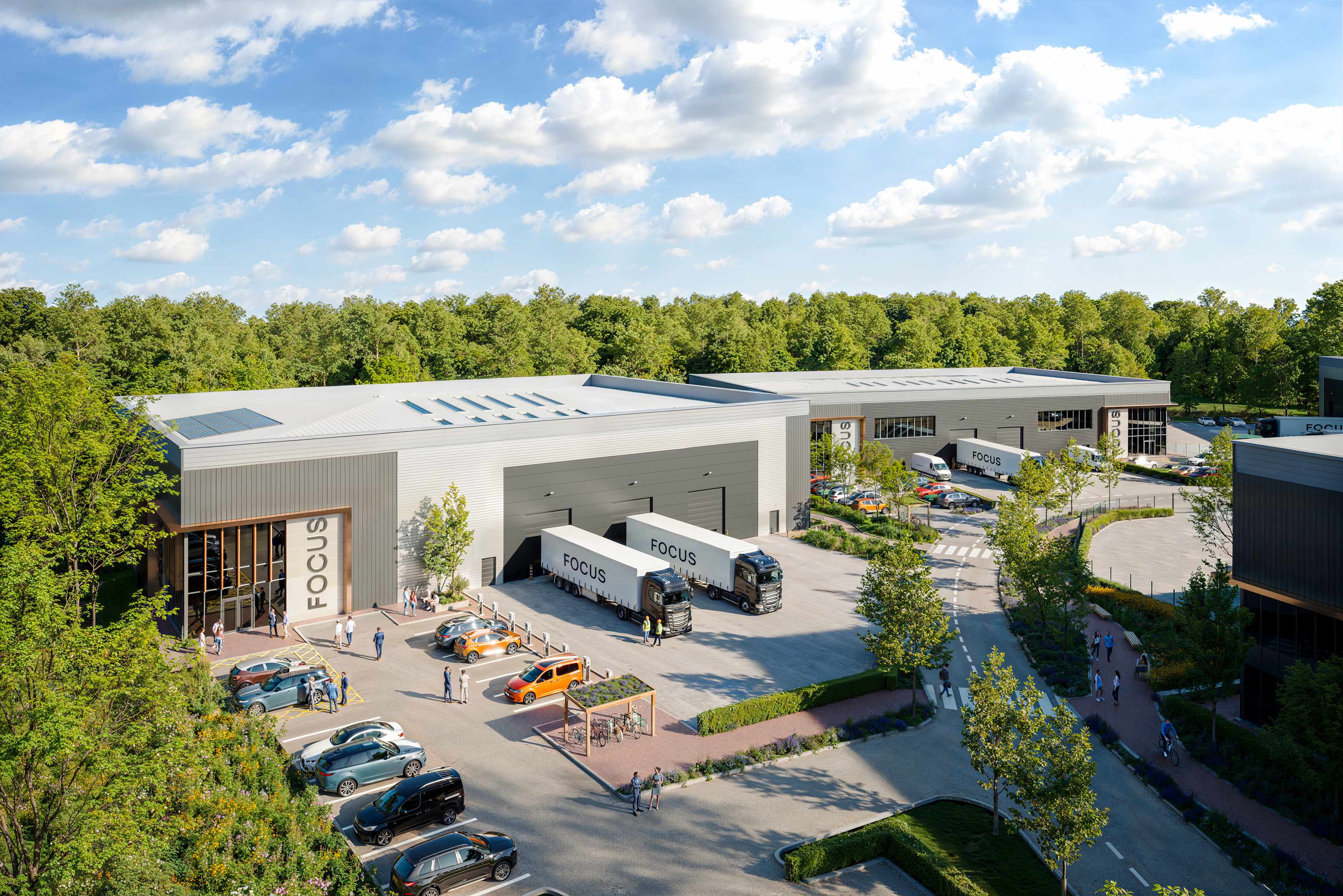 The scheme’s layout and architecture have been carefully designed to balance operational functionality with sensitivity to context. Architecturally, the buildings are designed to achieve a high-quality finish, with carefully considered materials and detailing that introduce texture, rhythm and visual interest to key elevations. The result is a contemporary employment environment that is both aesthetically appealing and operationally robust.